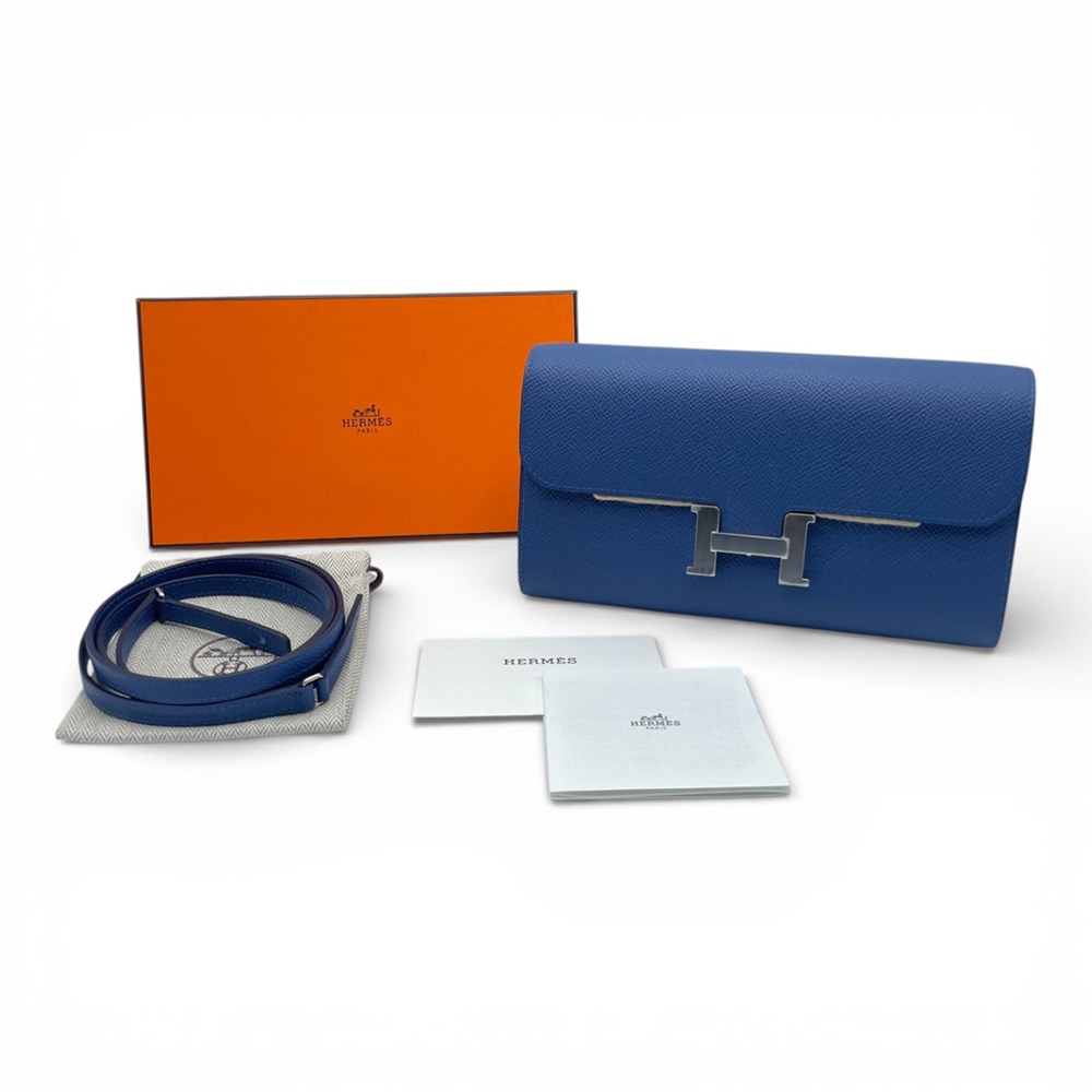 エルメスのコンスタンストゥーゴーは、アイコニックな「H」バックルをそのままミニマルなショルダーバッグに昇華させた、今最も注目度の高いモデルのひとつです。上質なエプソン素材は、ほどよいハリと傷の付きにくさが魅力で、デイリーからドレスアップまで幅広いシーンで活躍します。爽やかで知的な印象のブルータイは、お洋服を選ばず、差し色としても主役カラーとしてもお使いいただける万能カラー。身軽にお出かけしたいときも、必要なものをスマートに収納できる、機能性とエレガンスを兼ね備えた逸品です。