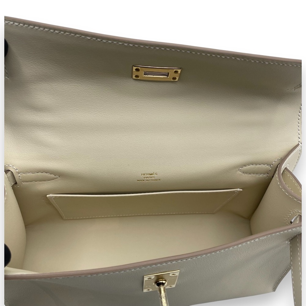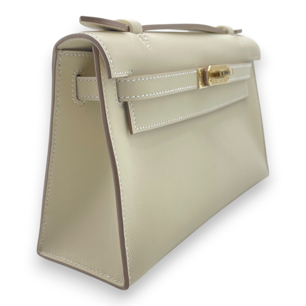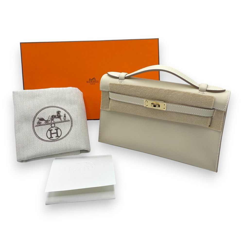 エルメスを代表するアイコンバッグのひとつ、ポシェットケリー。上質なスイフトレザーならではの、しなやかでなめらかな手触りが魅力です。カラーはエルメスの中でも特に人気の高いクレで、装いを選ばずどんなスタイルにも上品になじみます。ミニマルなサイズ感ながら必要なものはしっかり収まり、デイリーから特別なシーンまで幅広く活躍。手に取った瞬間から、ワンランク上のエレガンスを実感していただける逸品です。