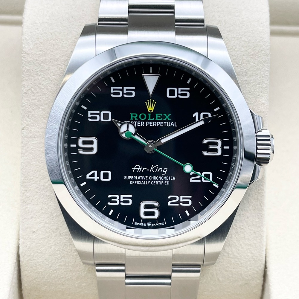 ロレックスのエアキング126900は、ステンレススチールの美しいボディにブラックの文字盤が印象的で、時を刻む瞬間に特別感を与えます。洗練されたデザインと精緻な職人技が融合し、装着するたびに特別な体験をお届けします。視認性に優れたディスプレイとともに、優雅さと機能性を兼ね備えたこのモデルは、現代のタイムレスな愛好者に相応しい一品です。