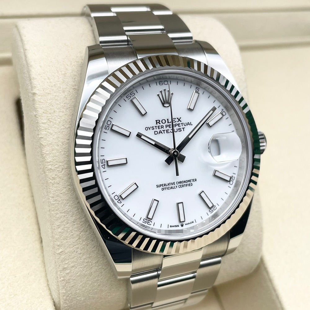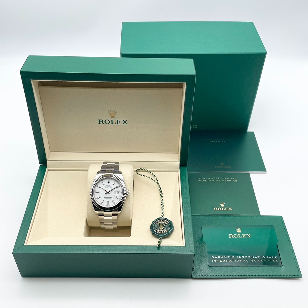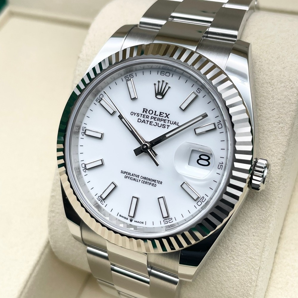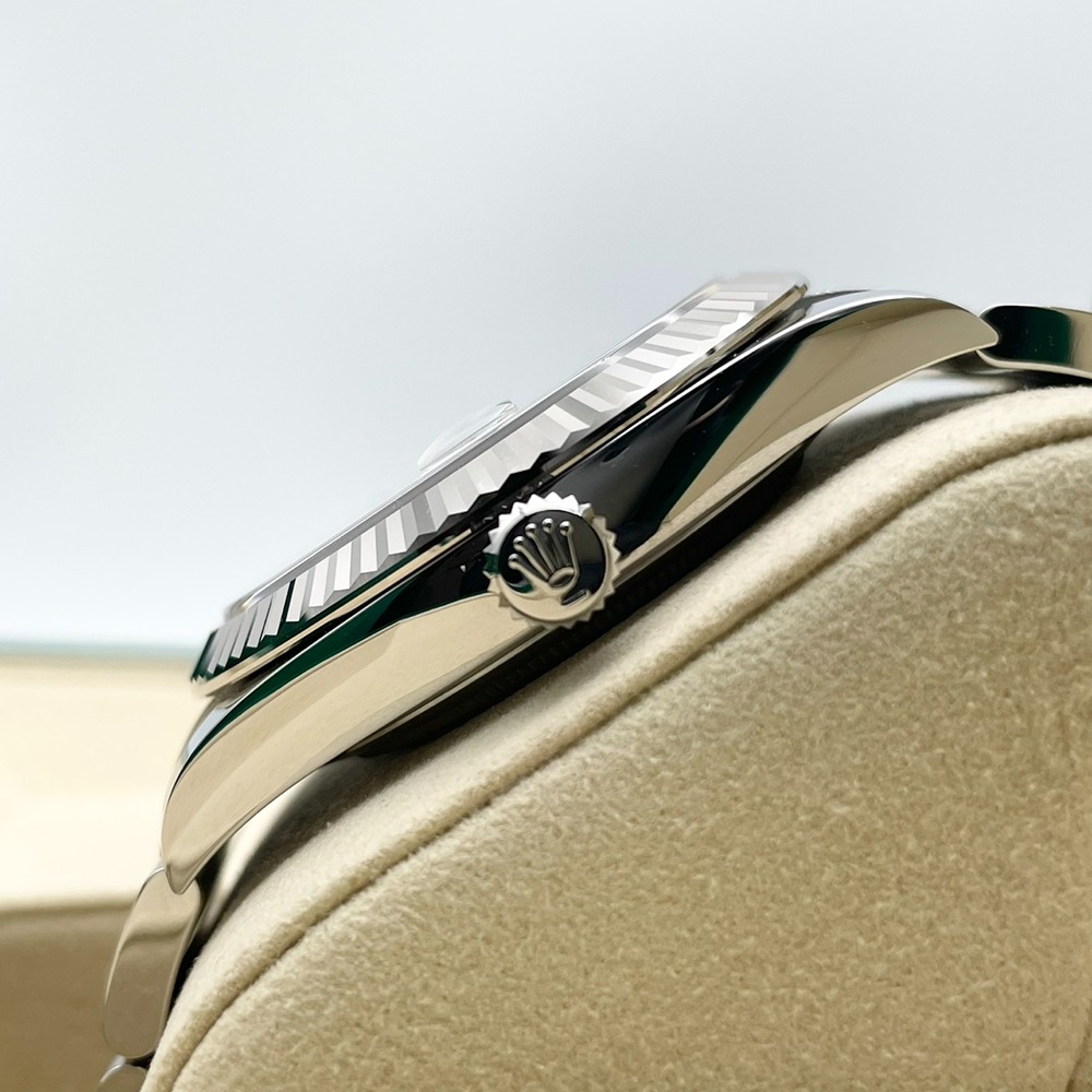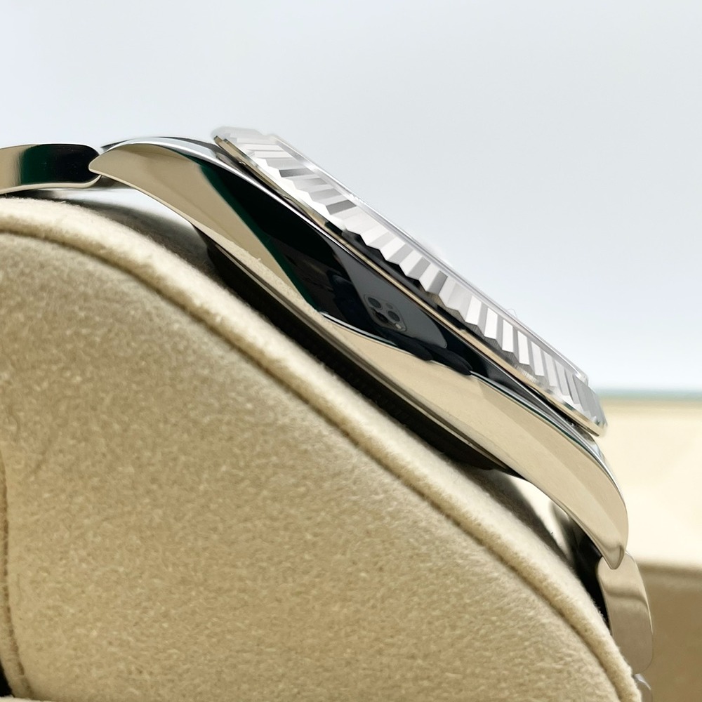 ロレックス不朽の名作デイトジャスト126334は、41mmの存在感あるケースに、ステンレススチールとホワイトゴールドを組み合わせたラグジュアリーな一本です。ホワイトダイヤルは視認性に優れ、ビジネスからフォーマルまで装いを選ばない万能さが魅力。フルーテッドベゼルが光を受けて上品に輝き、腕元からさりげなくステータスを物語ります。デイトジャストは流行に左右されず長く愛用できるため、ご自身用としてはもちろん、大切な記念日の一本としても最適です。新品かつ2026年2月保証書日付で、長期的な安心感も兼ね備えた、末永くご愛用いただける王道モデルです。